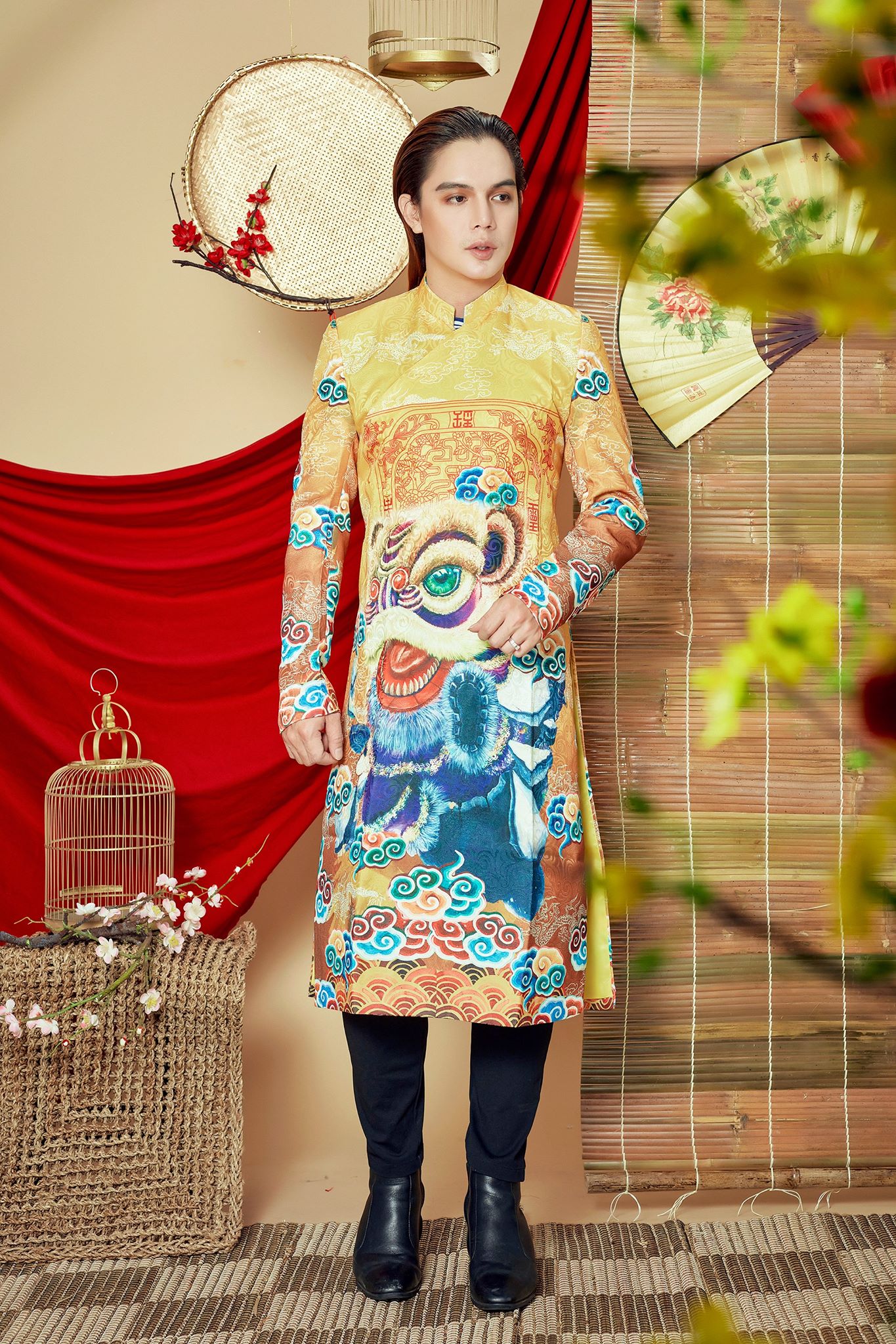 Bộ sưu tập áo dài dành riêng cho nam giới được lấy cảm hứng từ nhưng màu sắc rực rỡ của mùa xuân nhưng vẫn không kém phần nam tính.