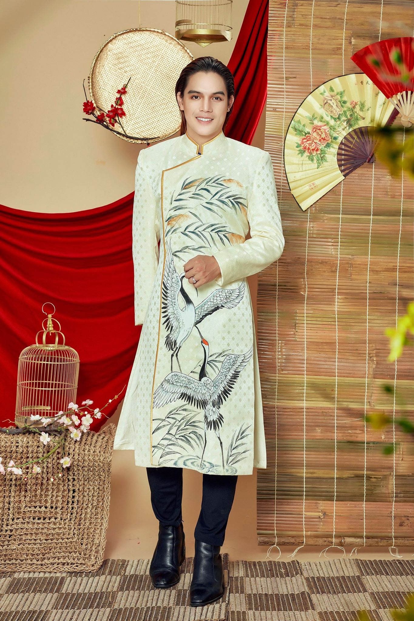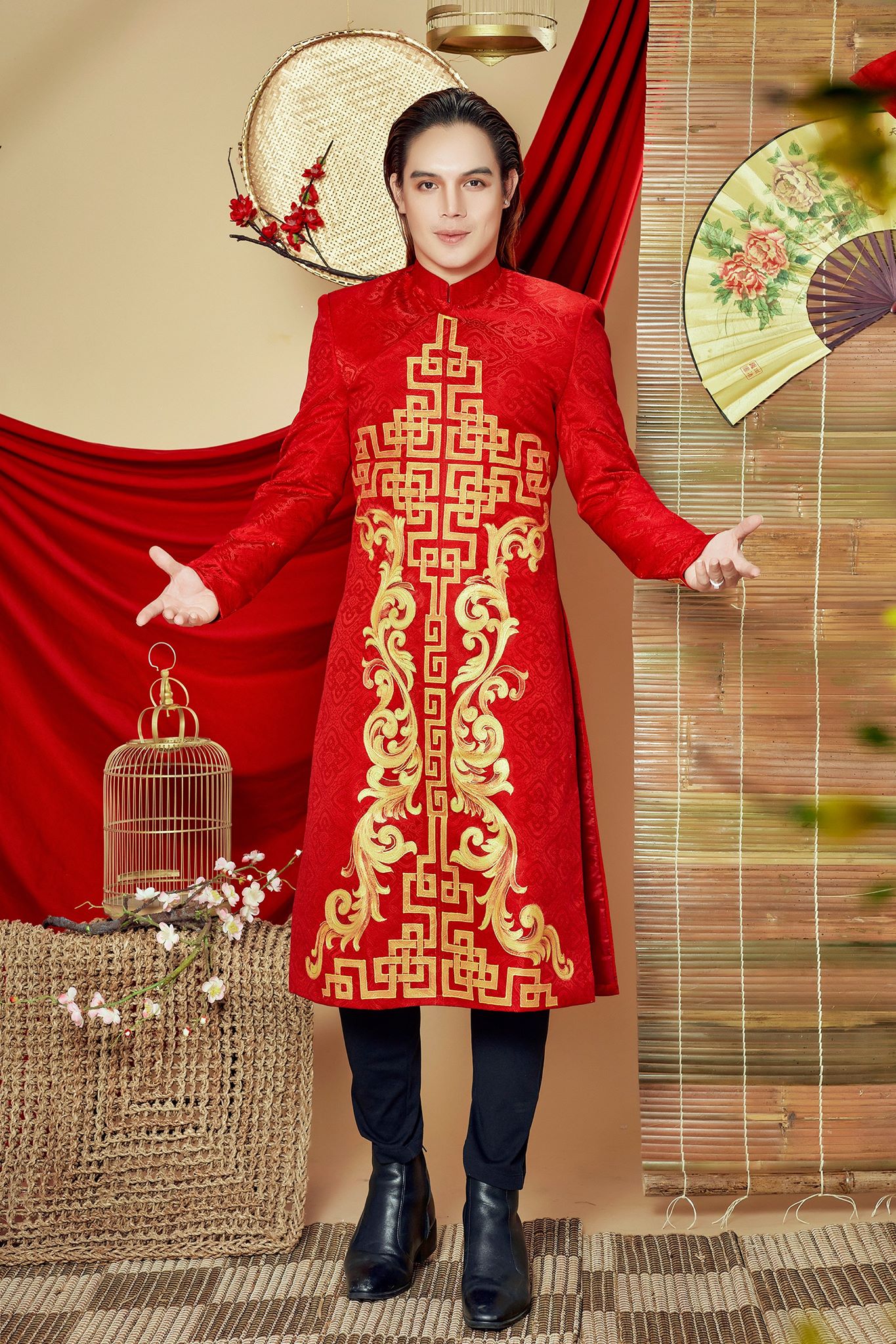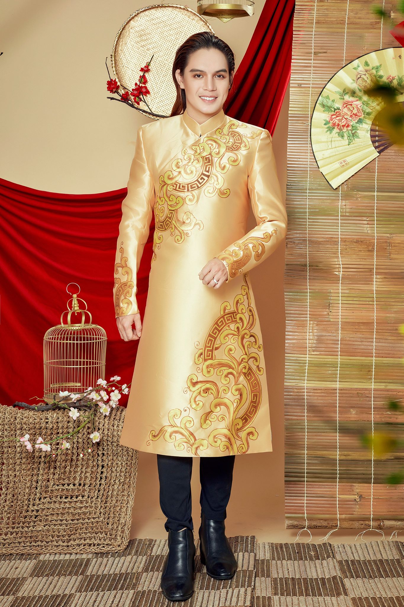 Người xem khó có thể rời mắt khỏi những họa tiết hoa văn cầu kỳ cùng hình ảnh rồng vàng, chim hạc, lân sư được lồng ghép khéo kéo không chỉ tạo nên sự lịch lãm mà còn khiến các đấng mày râu trở nên tinh tế, khác biệt hơn.