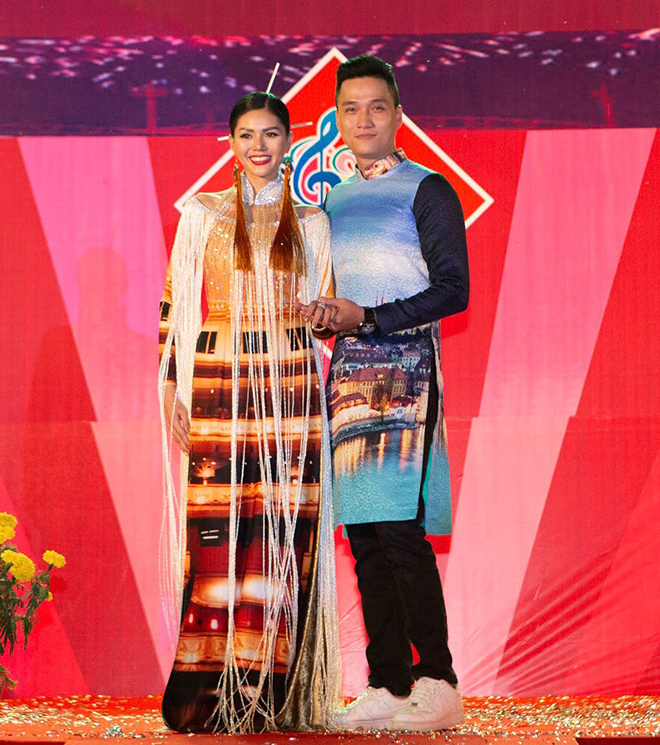 Họa tiết biển, sóng biển, núi non trên tà áo dài chính là những tác phẩm nghệ thuật mà NTK đã dày công phác họa với mong muốn giữ mãi giá trị văn hóa và môi trường biển sạch đẹp, là điểm đến cho du khách trong và ngoài nước. NTK mong muốn gửi thông điệp: Biển Việt Nam rất đẹp, rất thơ mộng và là món quà vô giá thiên nhiên ban tặng. Hãy chung tay bảo vệ môi trường biển Việt Nam.