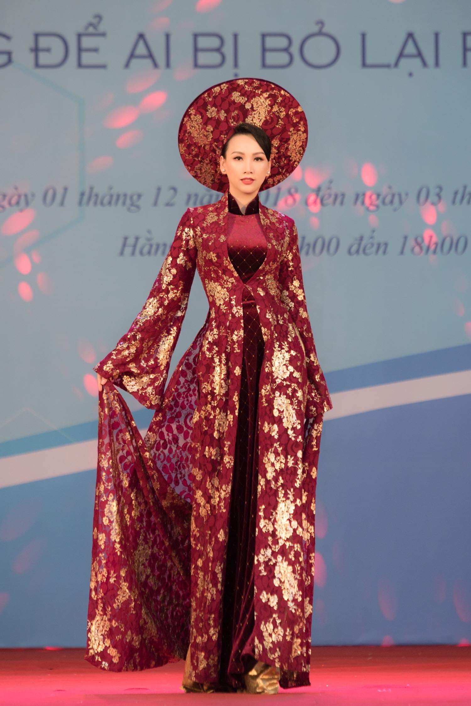 Trong buổi khai mạc triển lãm mang chủ đề “Không để ai bị bỏ lại phía sau”, hoa hậu Paris Vũ đã trình diễn những thiết kế áo dài đậm hồn Việt