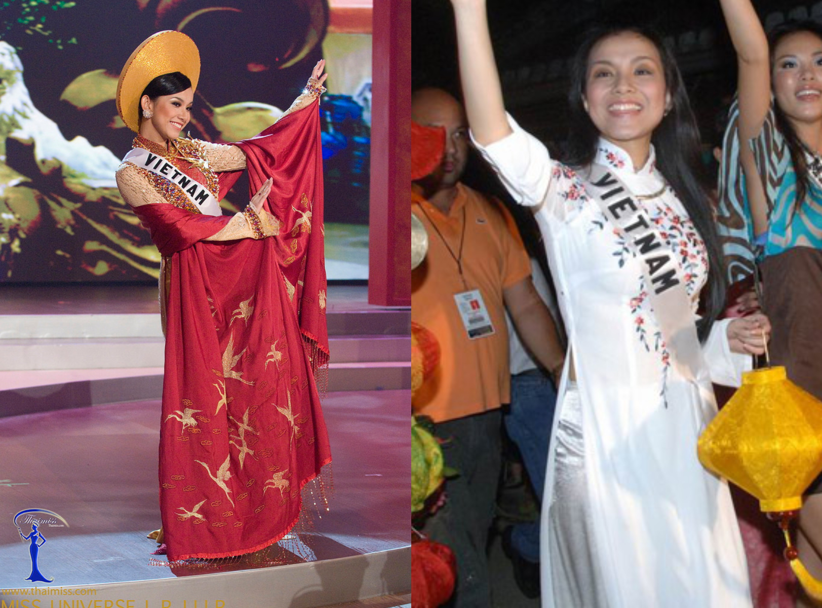 Đặt chân ra đấu trường nhan sắc Thế giới, hầu hết mỹ nhân Việt đều giới thiệu tà áo dài truyền thống với bạn bè quốc tế, thông qua phần thi trang phục dân tộc hoặc hoạt động bên lề của cuộc thi.
