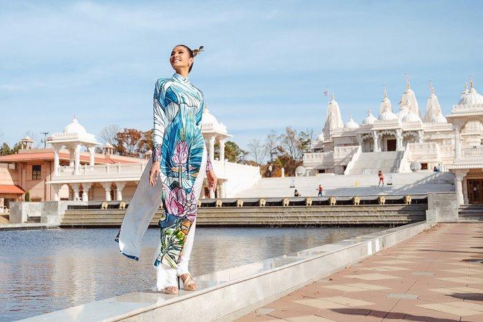 H'Hen Niê chiếm được cảm tình của người hâm mộ khi diện áo dài thổ cẩm cho hoạt động ngoài trời ở kỳ Miss Universe 2018 diễn ra ở Thái Lan.
