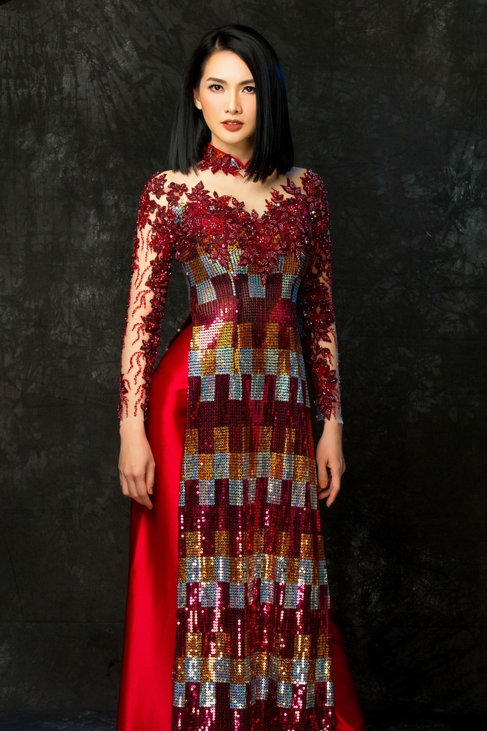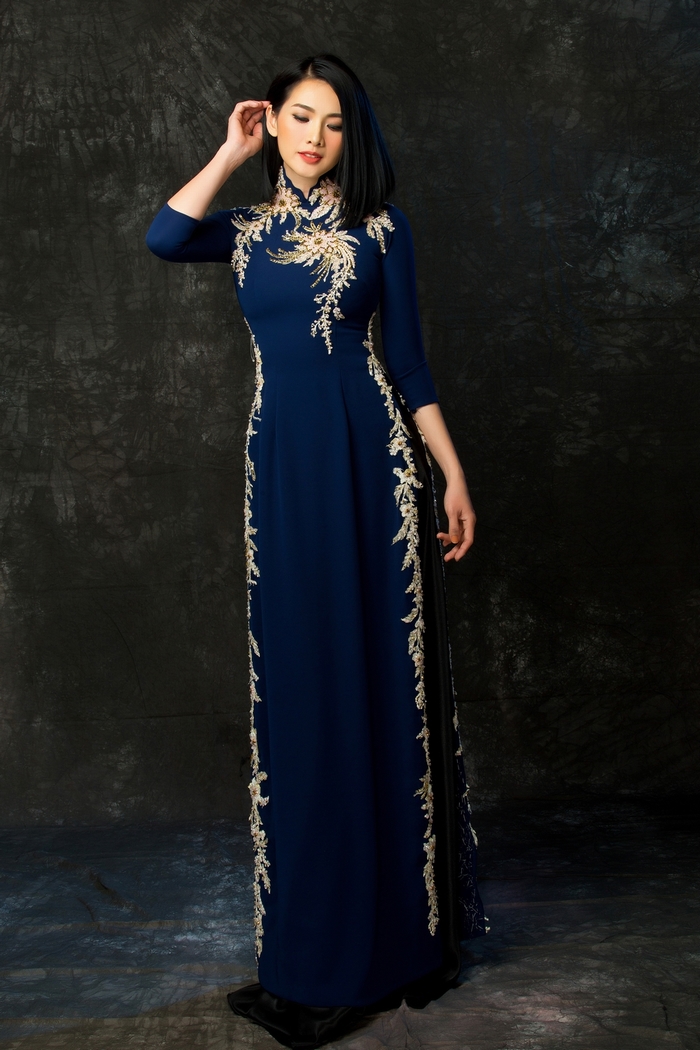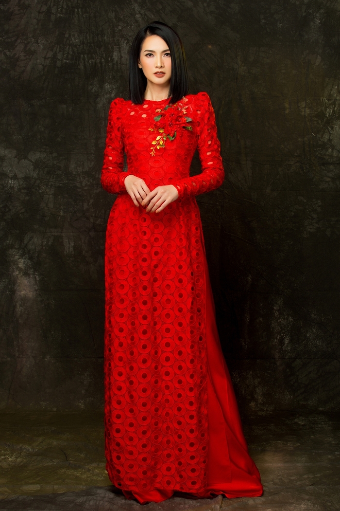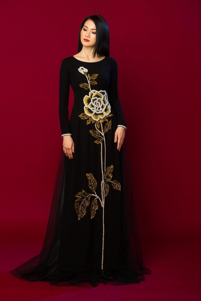 NTK sử dụng vải ren, kết hợp kỹ thuật may ráp đô. Kỹ thuật này yêu cầu người thợ khéo léo thực hiện nếp nối ở cầu vai tạo sự nổi bật cho áo dài.
