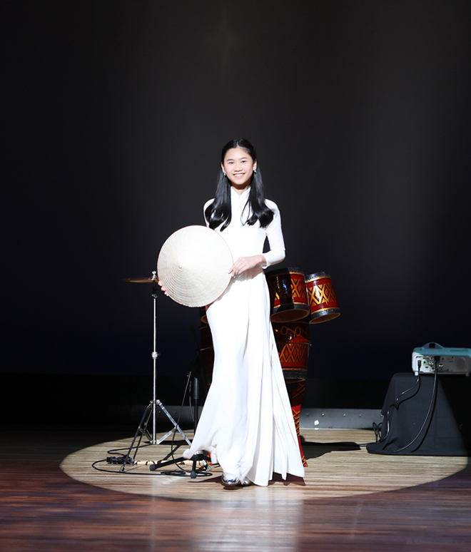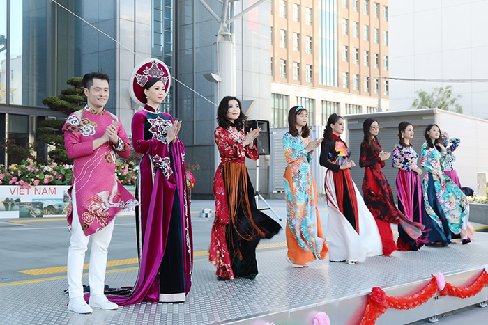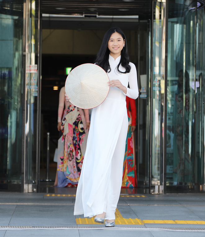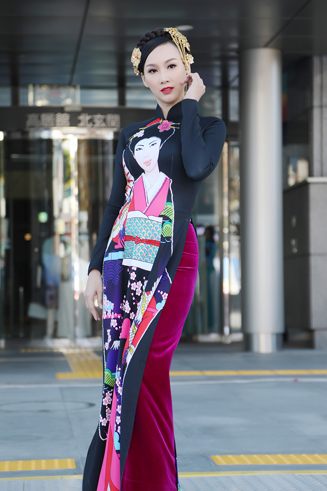 Giữ vai trò Đại sứ áo dài của sự kiện, Hoa hậu Paris Vũ làm vedette màn thời trang diễn ra tại quảng trường của trụ sở hành chính của thành phố Sakai