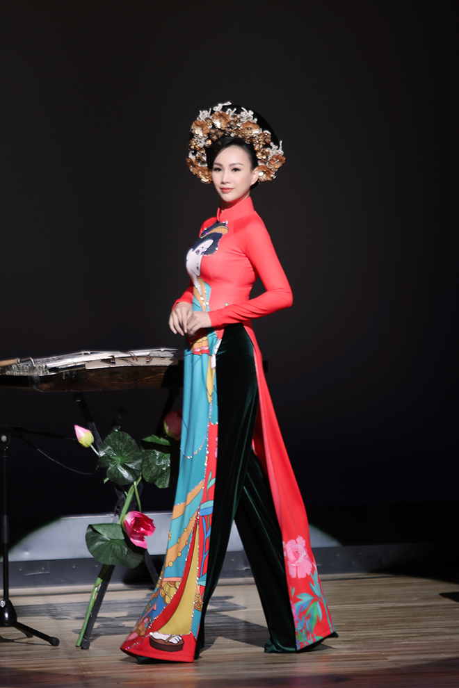 NTK Nhật Dũng cho biết, BST được lấy cảm hứng từ quốc phục của hai nước là kimono Nhật Bản và áo dài Việt Nam. Anh đã thổi vào đó hình ảnh của hai đất nước, dựa trên chất liệu truyền thống là nhung và lụa tơ