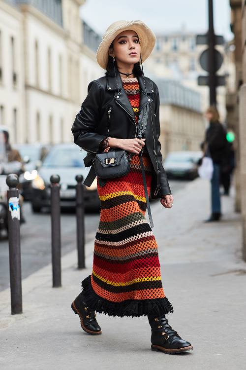 Ai có thể làm ngơ trước chiếc đầm dài sọc ngang, được đan thắt cầu kì của cô bạn này.