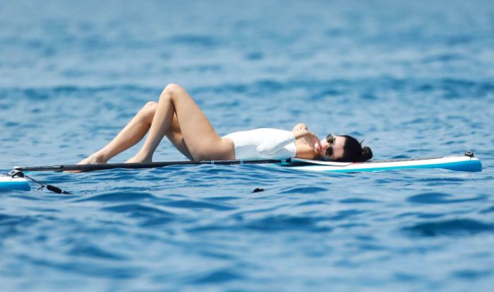 Kiểu áo tắm này cũng được siêu mẫu Kendall Jenner yêu thích. Cô đã chọn mẫu áo tắm trễ vai nhưng phần tay kín mít trong lần đi nghỉ với gia đình.