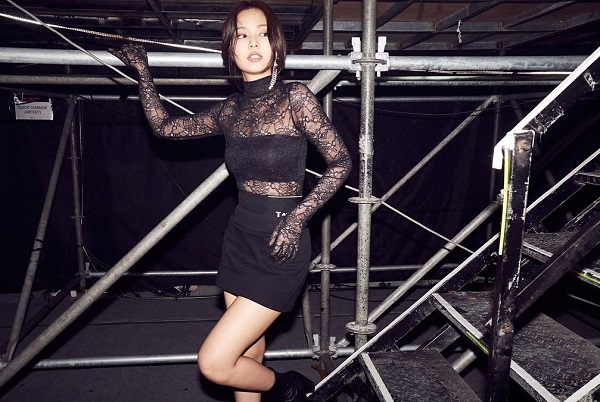 Trong một buổi diễn trên sân khấu, Jennie Black Pink chọn cho mình set đồ đen quyến rũ với thiết kế áo ren sheer bên trong được mặc kiểu áo quây đen
