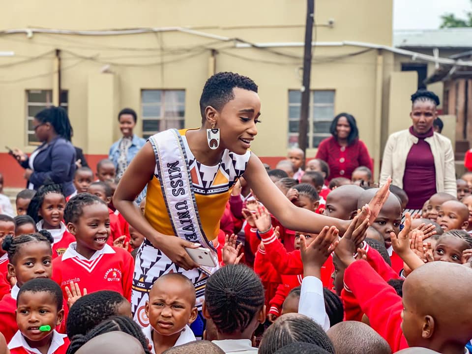 Zozibini Tunzi trong ngày trở lại mái trường cấp 1 thân yêu. Tại đây cô có buổi giao lưu với các thiên thần nhỏ cũng như trao học bổng cho các em.