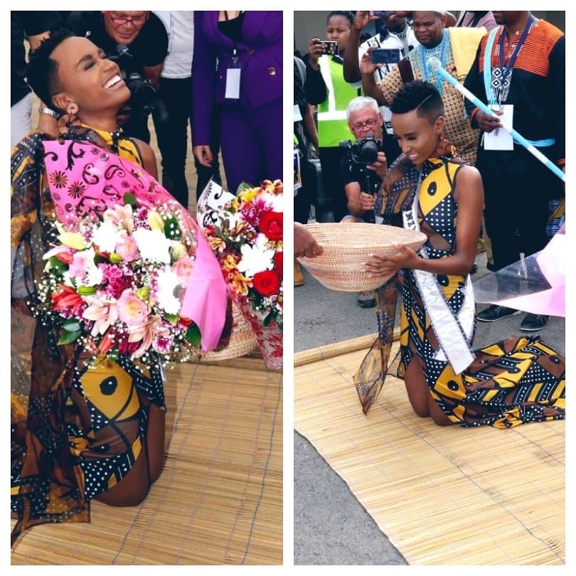 Người đẹp thực hiện các nghi thức truyền thống của người dân Nam Phi. Người ta thấy được ở Zozibini Tunzi nguồn năng lượng tích cực ở quê nhà.