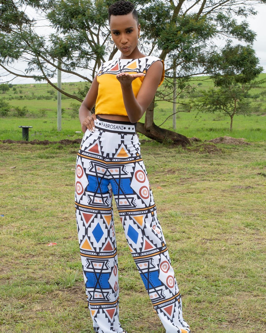 Một outfit mới lạ của Zozibini Tunzi trong hoạt động tại quê hương Cape.
