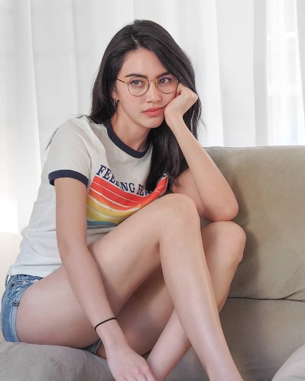 Mỹ nhân sinh năm 1992 trẻ trung, năng động trong áo thun mix cùng quần short tô điểm mắt kiếng đeo to tròn đáng yêu khi ở nhà