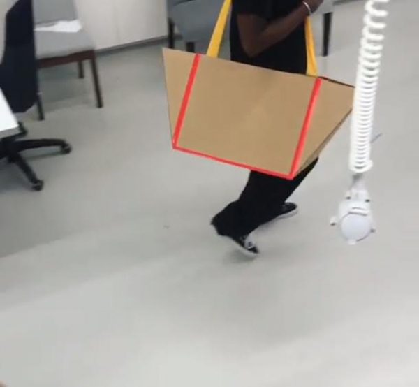 Abloh tiến hành thiết kế lên khung và khoe chiến lợi phẩm của mình tại xưởng thiết kế của IKEA.