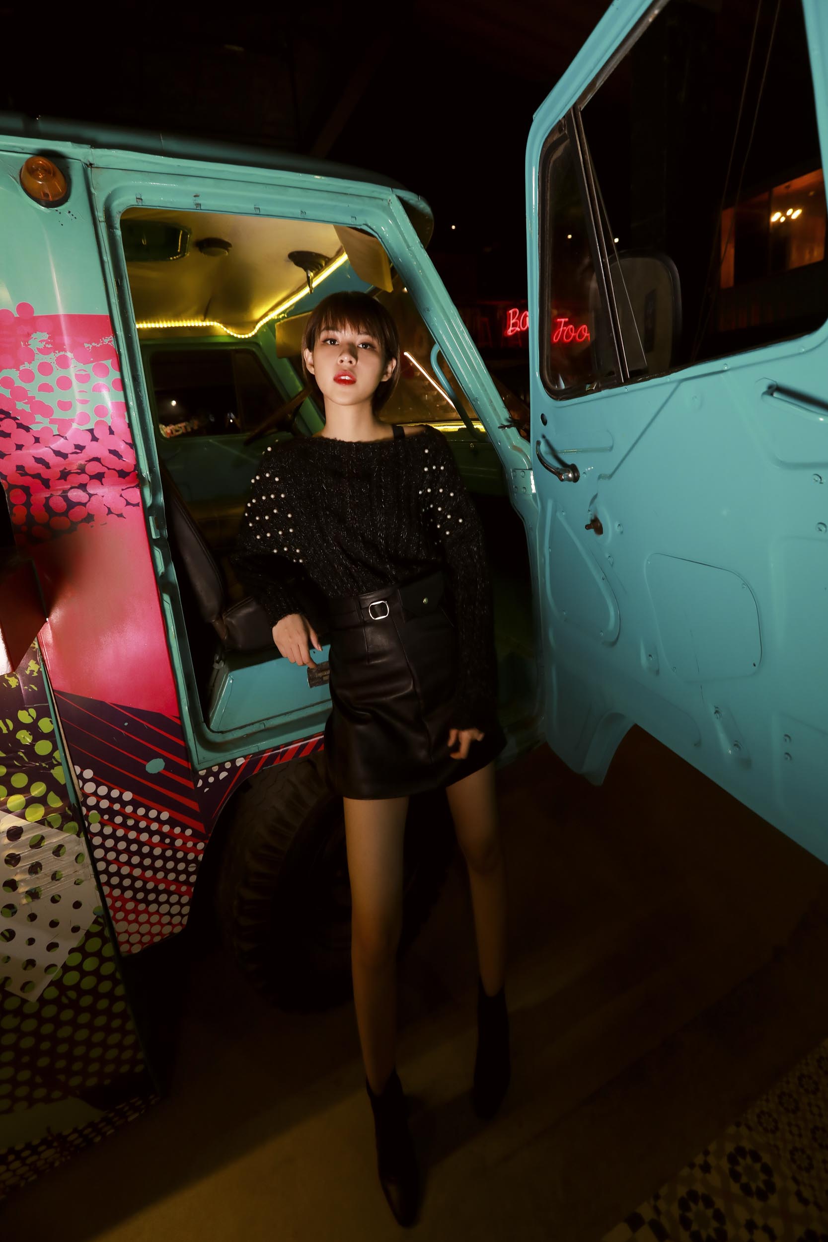 Tuy đồng điệu về màu sắc nhưng trái ngược về chất liệu, sự kết hợp của Phí Phương Anh mang lại cho cô một vẻ bề ngoài khá ‘cool ngầu’ nhưng không kém phần quyến rũ.