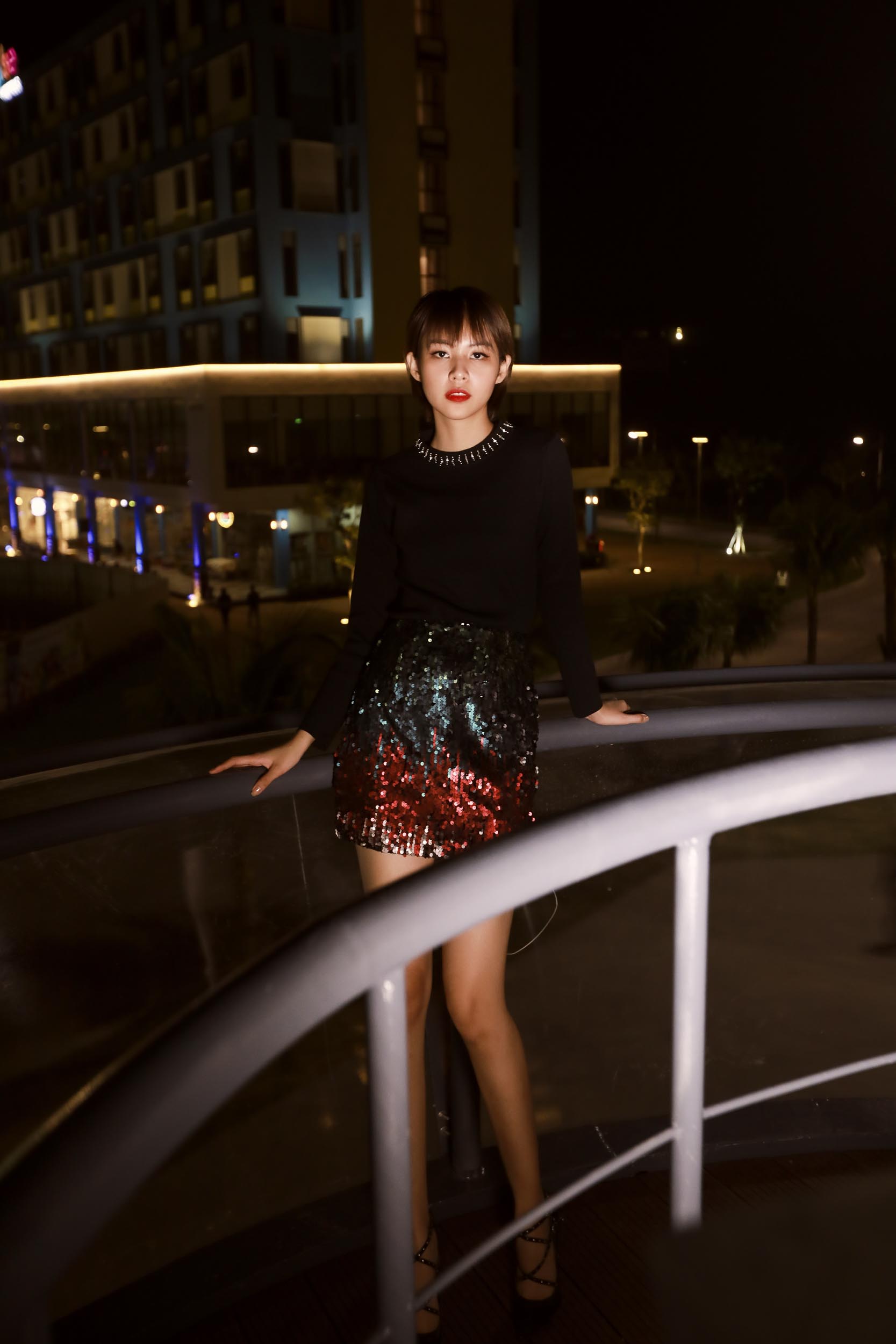 Khác với bộ trang phục all black bên trên, Phí Phương Anh còn chia sẻ cho các cô gái cách mix trang phục để có một vẻ ngoài nổi bật, lấp lánh hơn khi ra đường vào buổi tối.