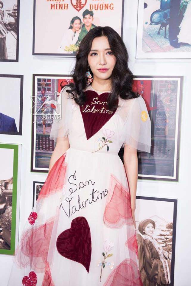 Đây là một sáng tạo của NTK Tùng Vũ, bạn gái Duy Mạnh phối nó cùng hoa tai dáng dài và kẹp tóc xước, khá thời thượng.