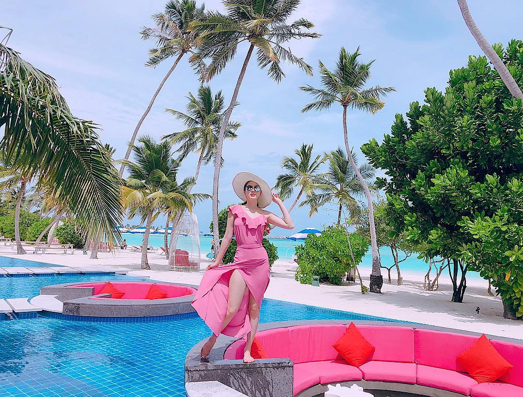 Dù đã U30, nhưng cô nàng Ngọc Thảo vẫn tươi tắn hết mức trong bộ áo tắm tông màu đỏ rực rỡ cùng các chi tiết nhấn nhá đơn giản.