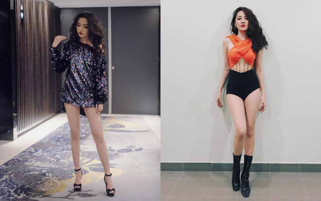Đôi chân giúp Bảo Anh trở nên quyến rũ và cuốn hút tuyệt đối khi diện những chiếc đầm ngắn, quần shorts, bodysuits