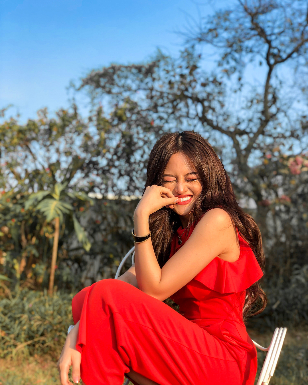 Diễn viên Thùy Anh lại mải mê chưng diện sắc đỏ những ngày đầu hè với mẫu jumpsuit bèo nhún.