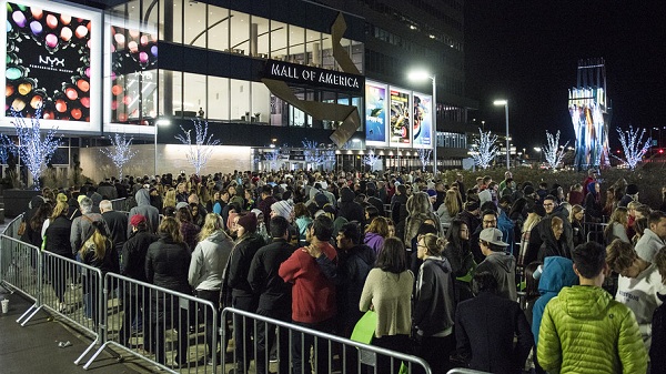 Người Mỹ thường có truyền thống kéo nhau trong ngày lạnh giá xếp hàng trước các khu trung tâm lớn trong ngày Black Friday để khi có thông báo là hàng trăm người ùn ùn kéo nhau mua sắm