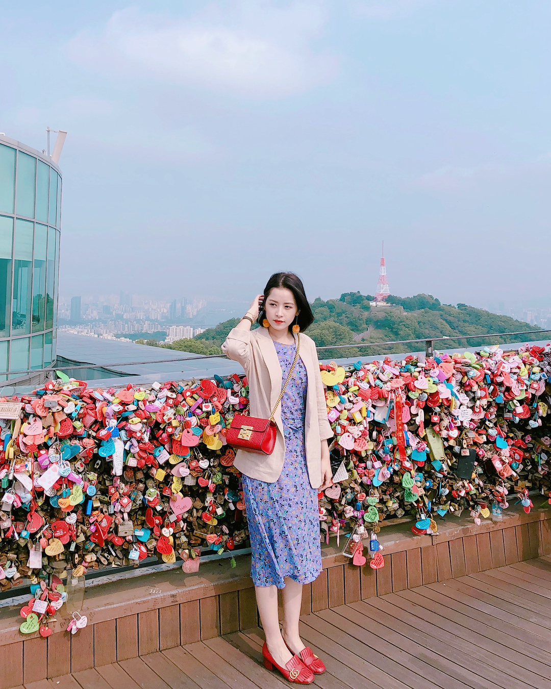 Chi Pu ghi dấu ấn cùng váy ren tông pastel. Cách sử dụng túi và giày cùng màu trở thành điểm cộng cho cách mix, match của nàng hot girl trong set đồ này. Tuy nhiên, nếu chiếc váy hoặc áo khoác ngắn hơn một chút, ôm hơn một chút thì trông Chi sẽ trẻ trung hơn nữa.