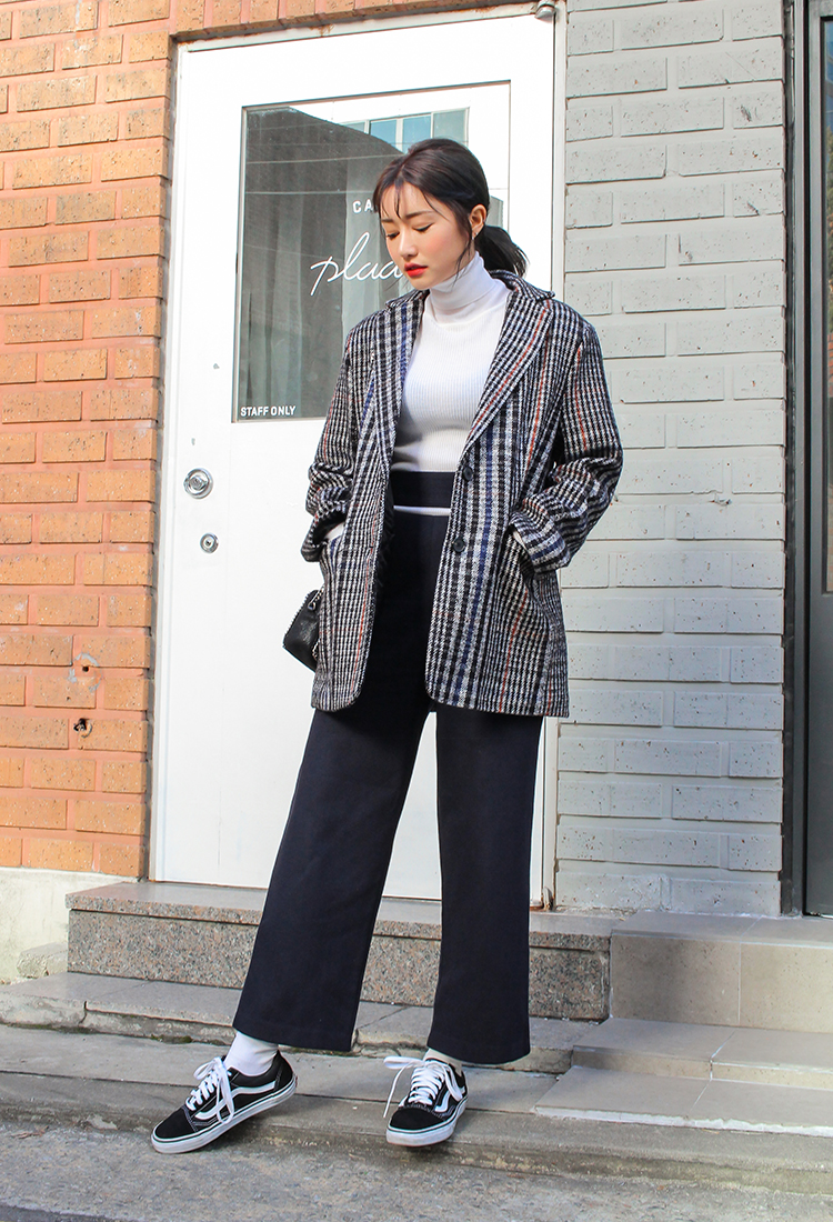 Giới fashionista Hàn Quốc cũng đã mê dần dần “chiếc áo dạ của papa”. Cách mix với loại áo này rất đa dạng, có thể mặc trong là áo nỉ, áo sơ mi hay áo len cao cổ.