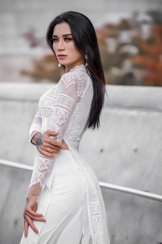 Trong bức ảnh, BB Trần diện 1 chiếc áo dài bằng ren được may theo phong cách truyền thống. Dáng người cao ráo, BB Trần thực sự khiến nhiều người ghen tị. Khuôn mặt được trang điểm kĩ càng khiến BB Trần thực sự sắc nét.