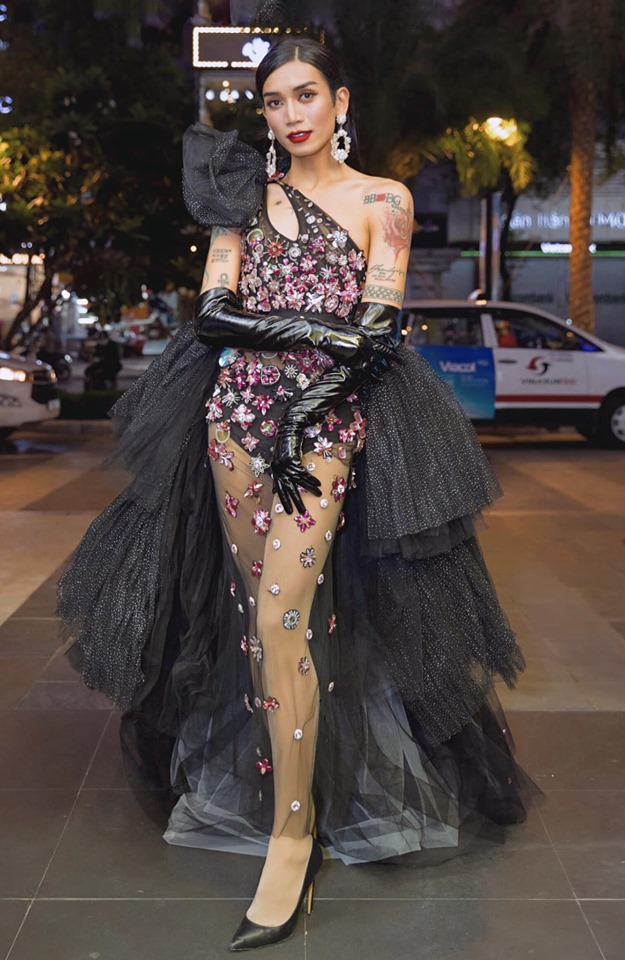 BB Trần khoe nội y đính đá sau lớp váy lụa