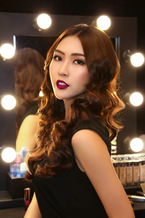 Đâu chỉ tông nude nhẹ nhàng nền nã mới hợp với Tường Linh, chọn cho mình đỏ trầm cá tính cô cũng xinh đẹp, quyễn rũ hết nấc. Lớp son lì mịn mượt bám lên môi tăng thêm vẻ rạng ngời cho cô hoa hậu.