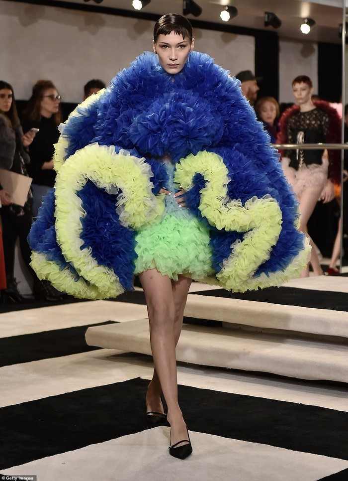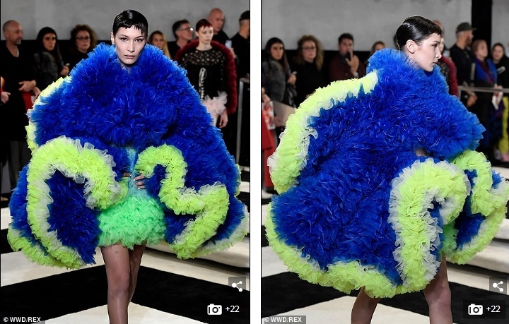 Bella nổi bật với chiếc đầm “khổng lồ” lạ mắt trong show diễn của nhà thiết kế Tomo Koizumi tại tuần lễ thời trang New York