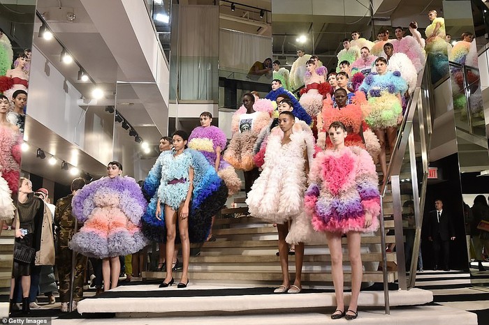 Dàn mẫu khoe sắc trong show diễn của nhà thiết kế Tomo Koizumi tại New York Fashion Week.