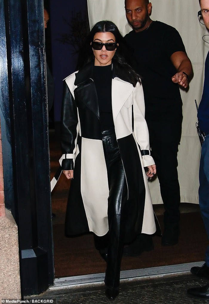 Cô chị Kourtney Kardashian lại sành điệu với set đồ trắng đen sang trọng.