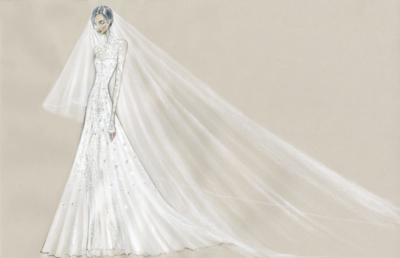 Không chỉ gây ấn tượng bởi các chi tiết tinh tế, Ralph Lauren cũng không quên tạo nên vẻ ngoài lộng lẫy cho thiết kế đầm này bằng chiếc khăn voan đội đầu dài gần 23 mét.