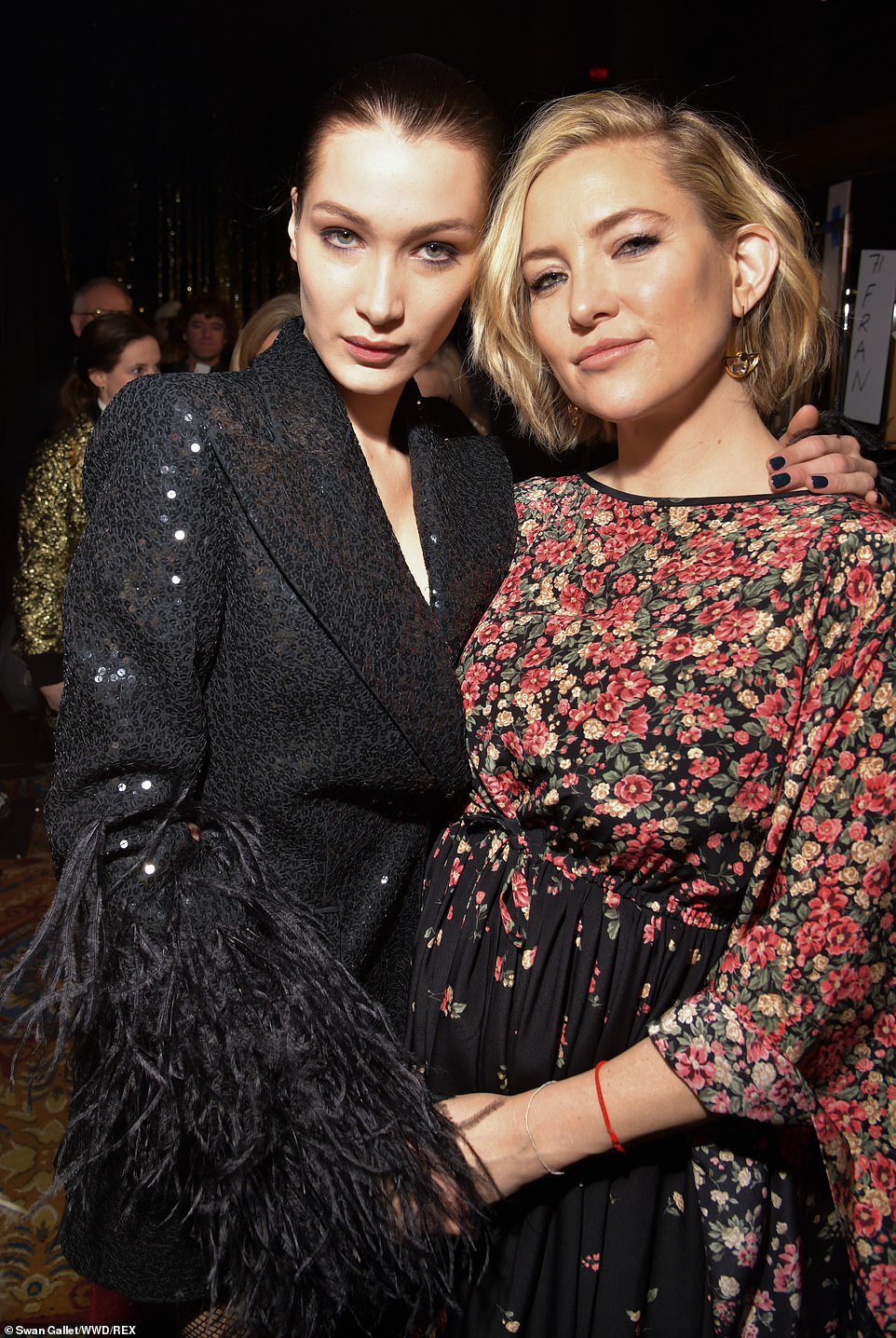 Nếu cô diễn viên Kate Hudson chọn cho mình bộ váy nữ tính hoa hòe thì Bella lạnh lùng trong áo blazer đen vải sequin lấp lánh có phần thiết kế tua rua ở phía tay.