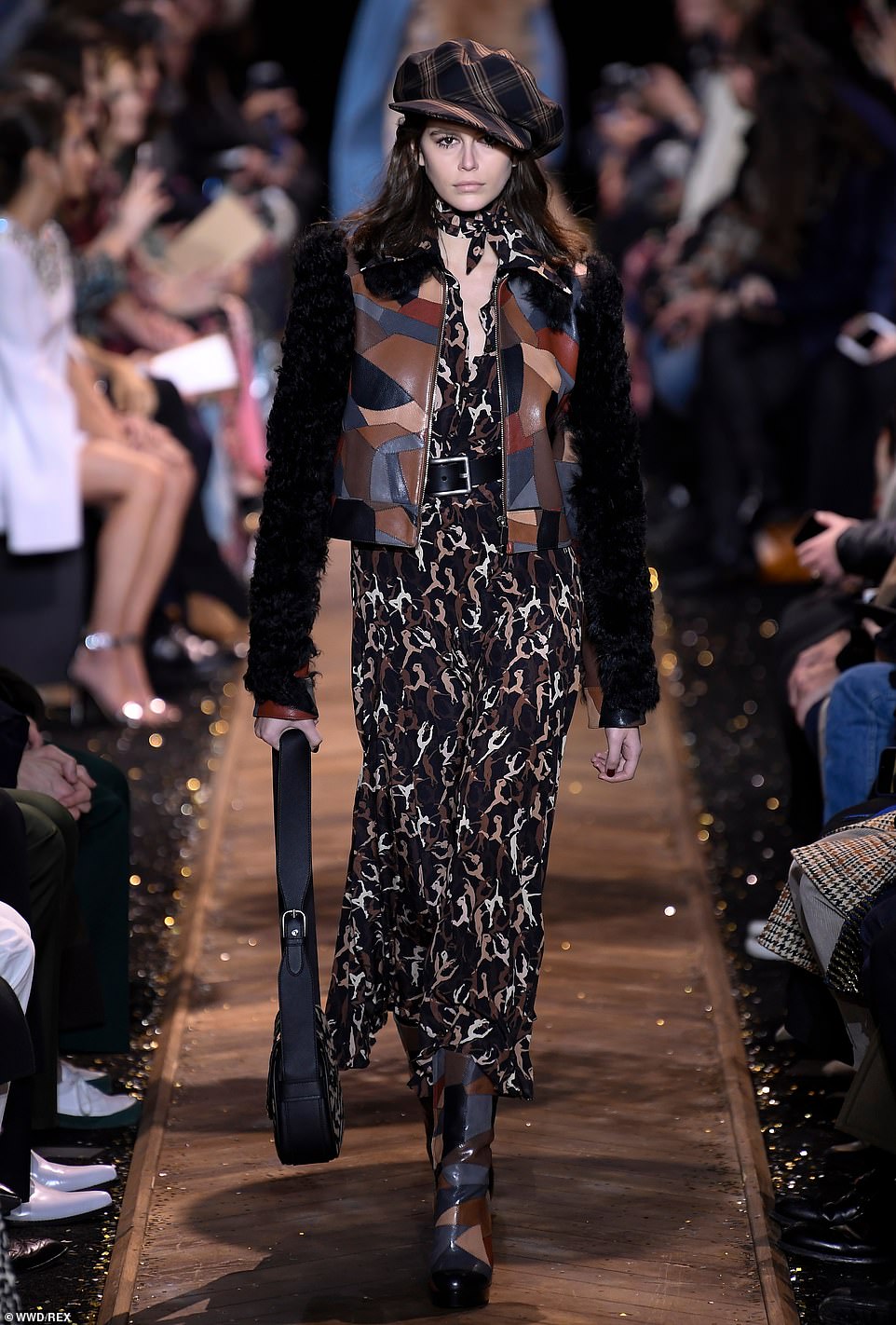 Show diễn không thể thiếu sự xuất hiện của Người mẫu của năm 2018 vừa qua Kaia Gerber. Cô nàng bí ẩn, thu hút trong phong cách retro sải bước đầy tự tin trên sàn catwalk