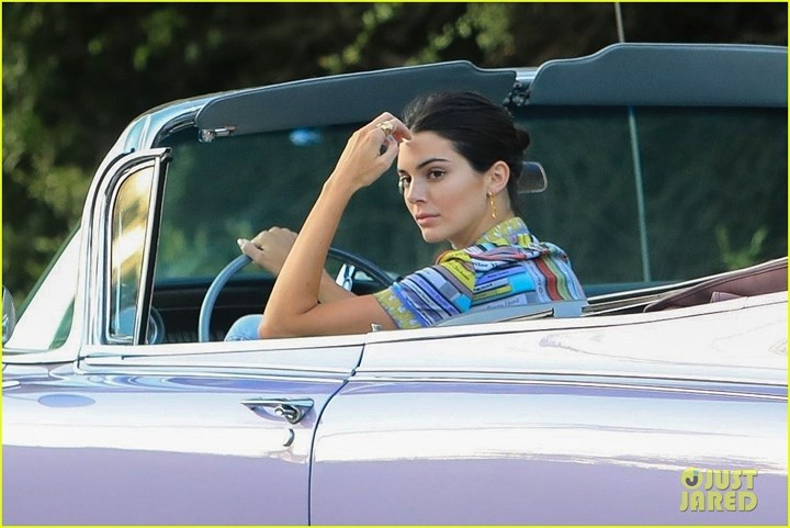 Kendall Jenner thu hút sự chú ý của các “tay săn ảnh” và người hâm mộ khi xuất hiện trên đường phố Los Angeles hôm qua với chiếc xe màu tím vintage mui trần cùng với phong cách thời trang vô cùng sành điệu
