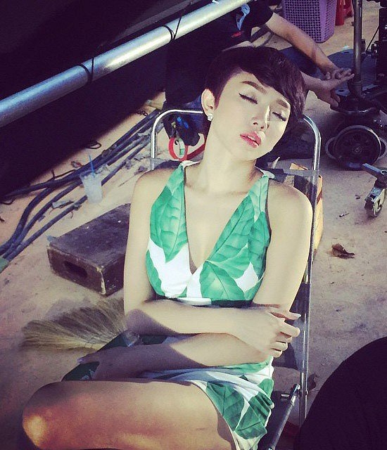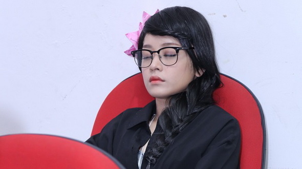 Sau mỗi cảnh quay, trong lúc chờ cảnh diễn sau, Chi Pu thường tranh thủ nghỉ ngơi chợp mắt sau những lúc làm việc căng thẳng. Dù chỉ là ngủ gật thôi nhưng cô nàng vẫn khiến nhiều người trầm trồ khen ngợi.