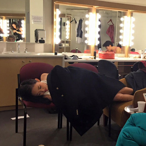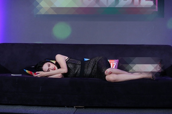 Hay nằm sõng soài trên chiếc ghế sofa trong hậu trường cô vẫn ngủ ngon lành và thần thái xuất sắc.