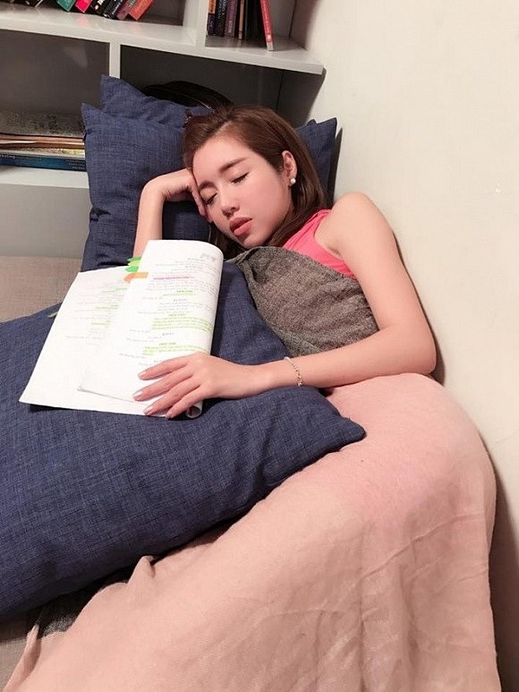 Ngủ quên khi đang nằm đọc sách, Elly Trần vẫn toát lên sự quyến rũ vẫn toát ra từ người đẹp khiến người ta không khỏi trầm trồ.