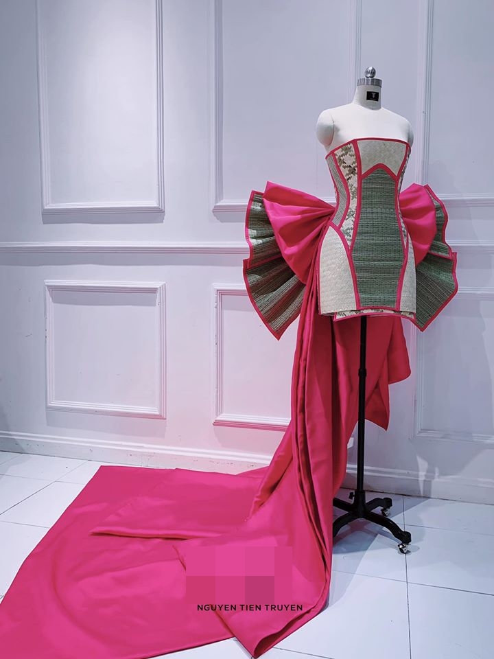 Thế là dòng tin nhắn cho Nguyễn Tiến Truyển lúc hơn 2 giờ sáng bảo em ơi a muốn cái này làm được không? trong phút chốc 2 anh em bàn với nhau đến lỡ sáng thế là chiếc váy này ra đời từ nhiều loại chiếu khác nhau thuần Việt …”