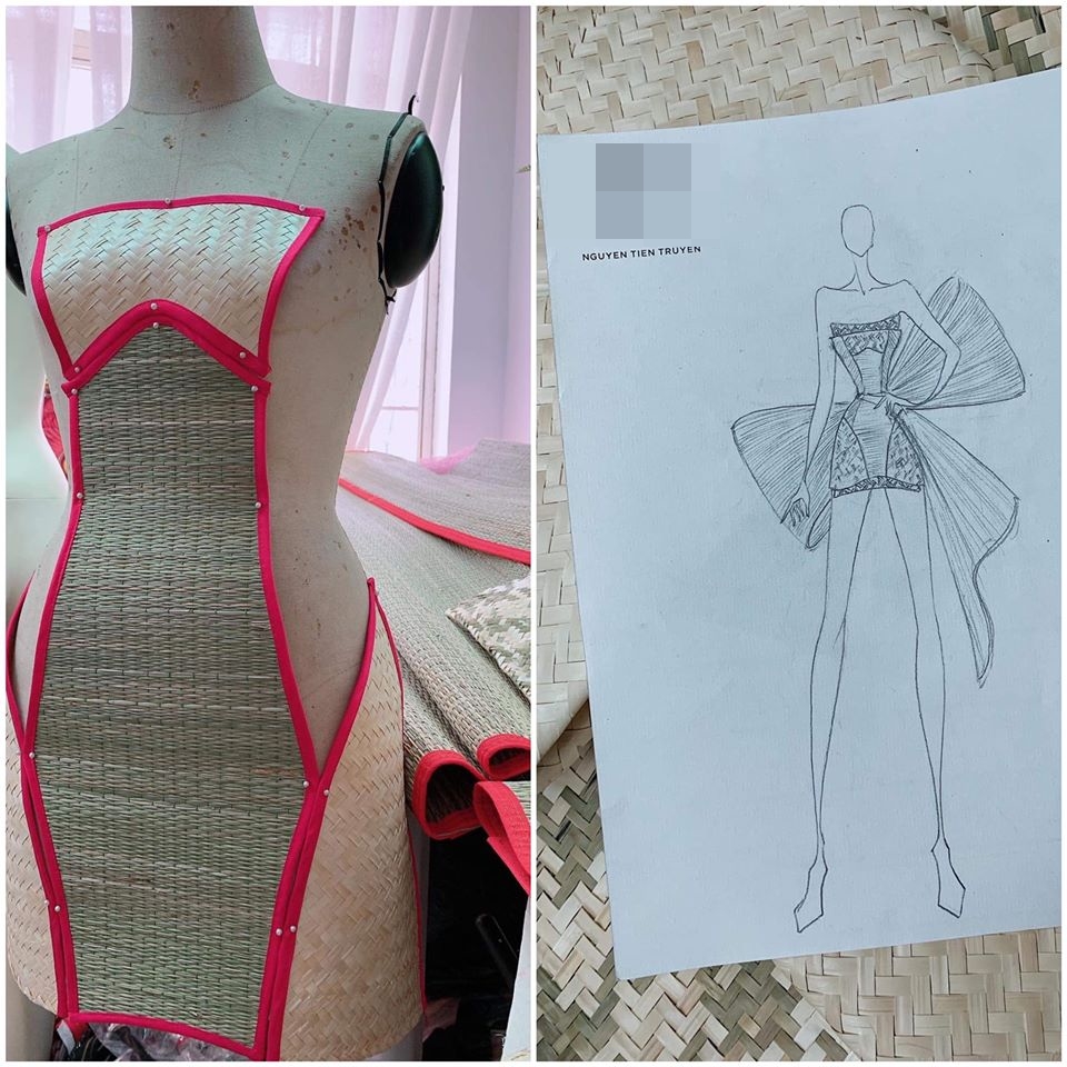Trên trang cá nhân của mình, người đẹp chia sẻ: “Chiếc váy được sáng tạo với chất liệu thuần Việt và lấy cảm hứng từ làng nghề truyền thống dệt chiếu cói Bình An, Sài Gòn - một trong 8 làng nghề chiếu cói lớn và lâu đời nhất Việt Nam… Đâu đó giữa sự nhộn nhịp, hiện đại và hào nhoáng của Sài Gòn vẫn còn sót lại những vẻ đẹp bình yên xưa cũ, những vẻ đẹp của văn hoá truyền thống đang dần bị mai một bởi tốc độ đô thị hoá ngày càng hiện đại…”