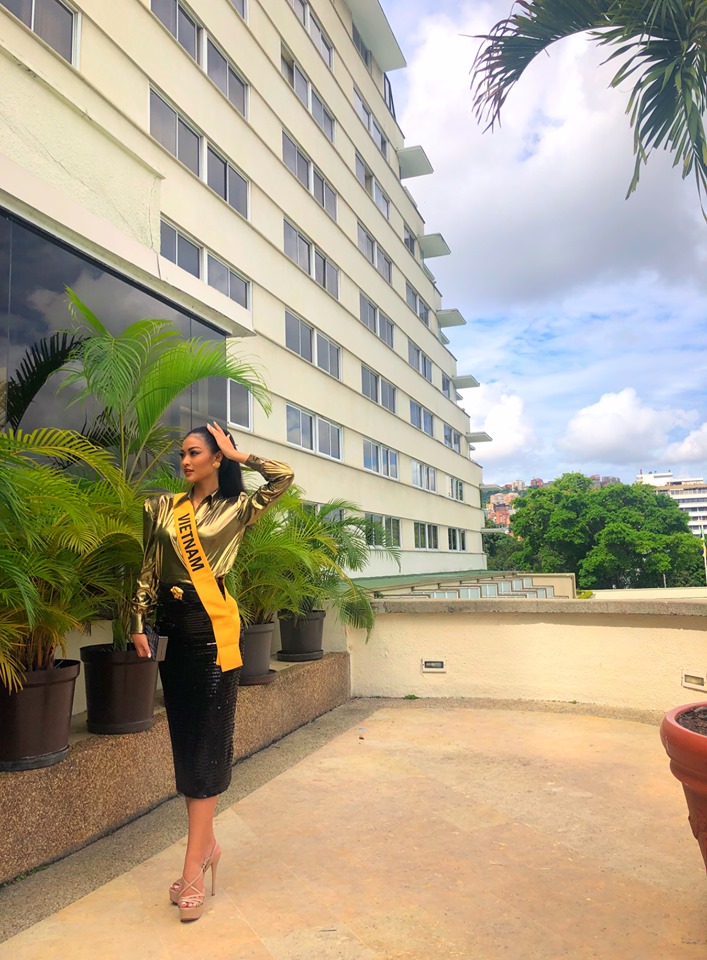 Trang phục đơn sắc nghe qua tưởng chừng như không khiến người mặc nổi bật, thế nhưng, với hoàn cảnh tham gia một cuộc thi nhan sắc. lịch trình dày đặc, đây là sự lựa chọn thông minh. Bởi lẽ nếu là một bộ cánh họa tiết, Kiều Loan chắc chắn sẽ phải mất nhiều thời gian cho việc chọn phụ kiện, hoa tai hay giày dép… chưa kể, mặc một bộ cánh họa tiết cũng sẽ hạn chế việc có background phù hợp cho những tấm ảnh đẹp nhất, còn trang phục đơn sắc thì không.