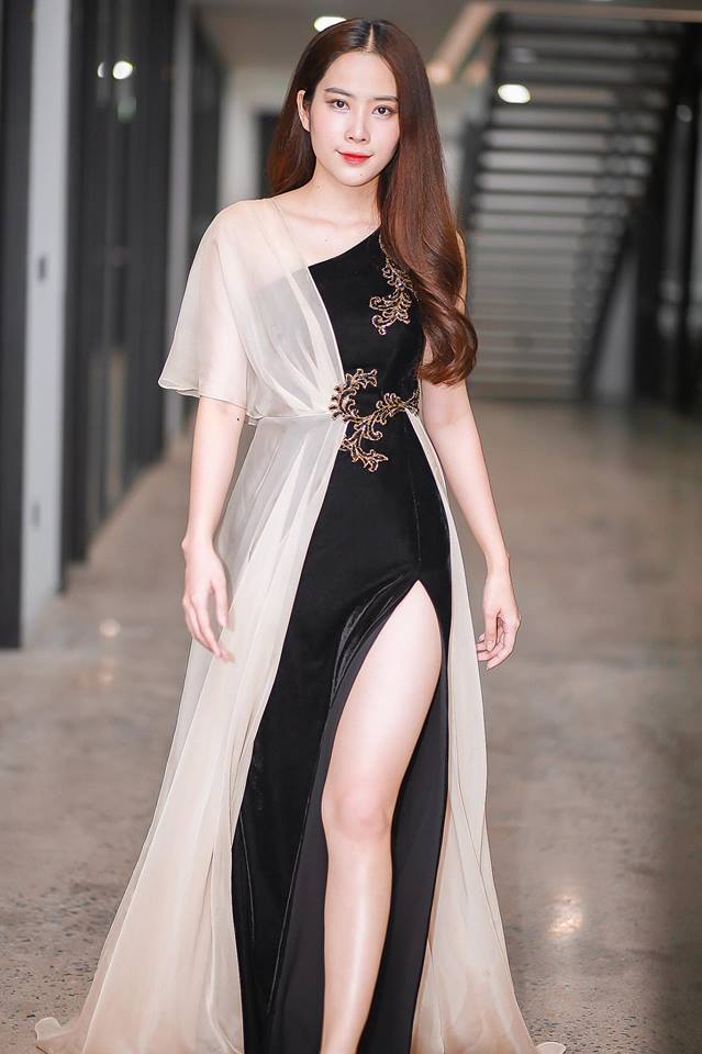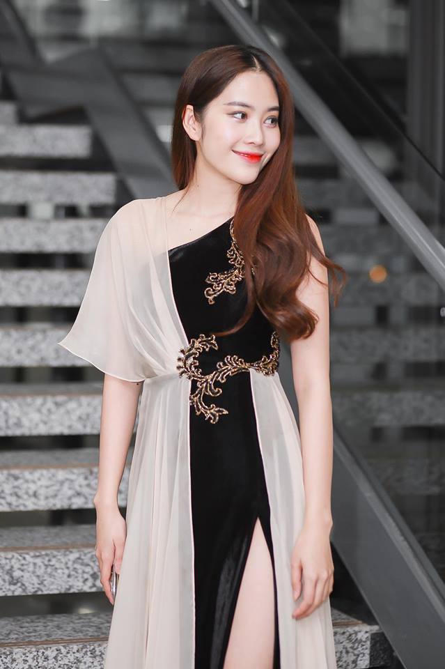 Không chỉ màu sắc nổi bật mà tà váy xẻ cao giúp Nam Em tôn lên đôi chân thon, dài, quyến rũ của mình.