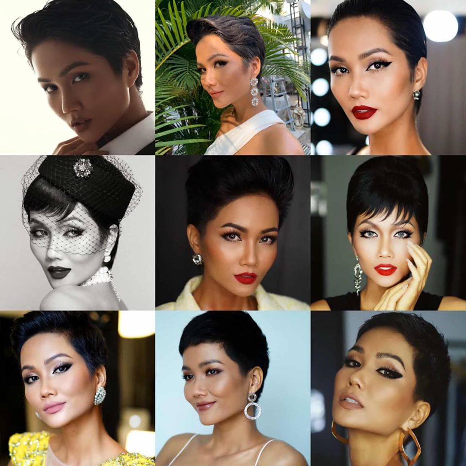 H'Hen Niê quả thực là một Hoa hậu “tắc kè hoa”, vì tần suất thay đổi kiểu tóc nhiều tới chóng mặt. Với mái tóc tém, H'Hen Niê khoe được gương mặt góc cạnh, khó lẫn, được mệnh danh là “viên ngọc trai đen” của làng mẫu Việt.