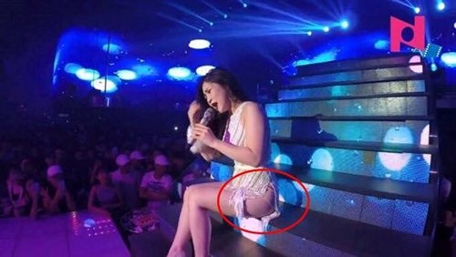 Tháng 10 vừa qua, nữ ca sĩ gốc Nghệ An gây chú ý nhất tại đêm nhạc không phải ở giọng hát mà từ bộ trang phục ngắn cũn cỡn và hở hang quá đà của cô.