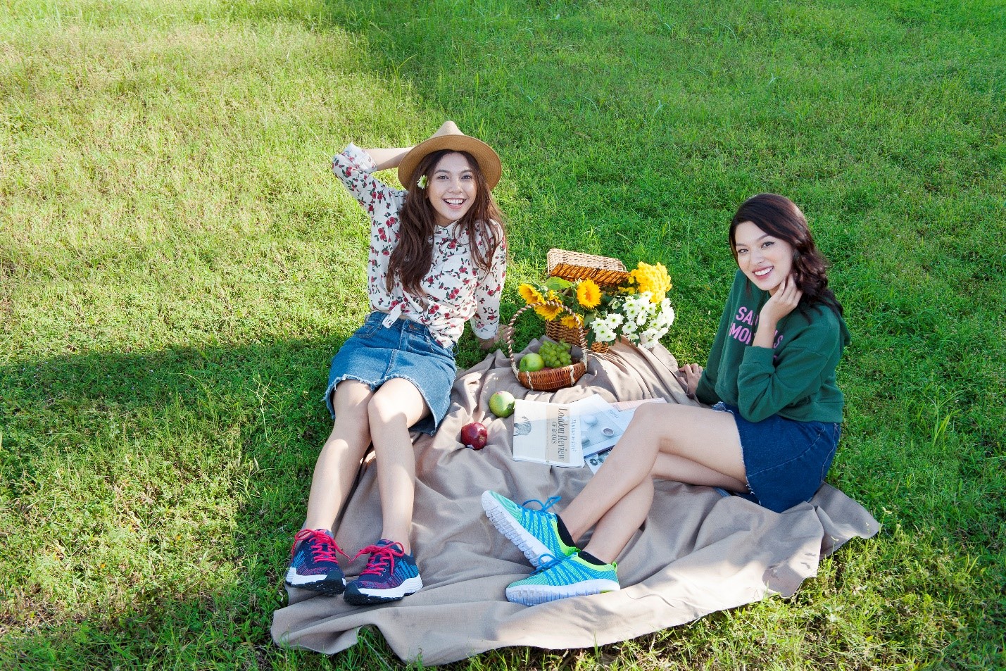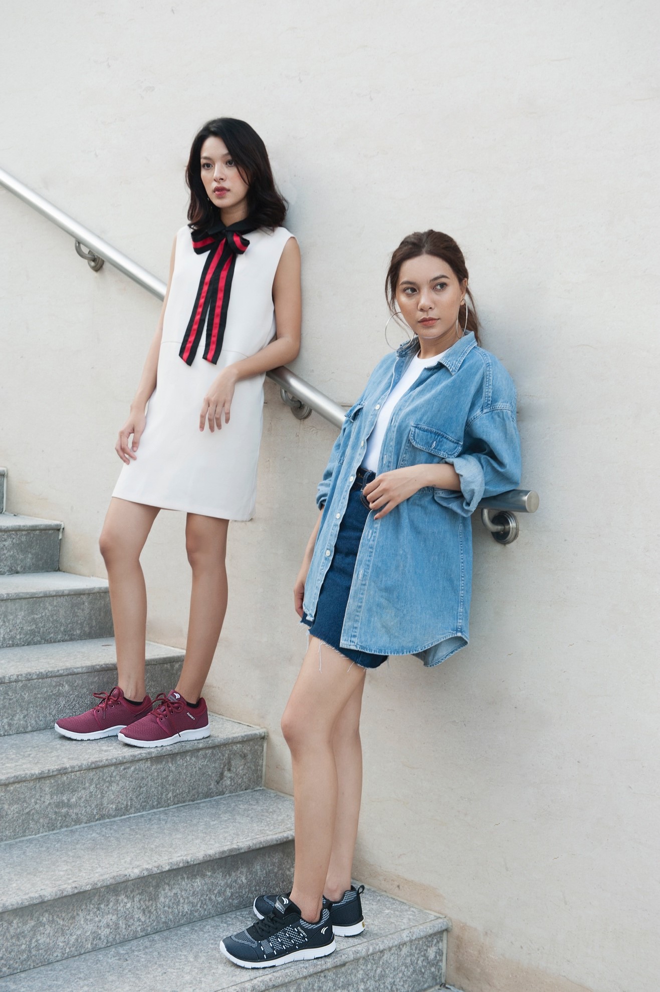 Bộ đôi Teela - Tú Hảo tươi trẻ cùng đôi sneaker nổi bật.