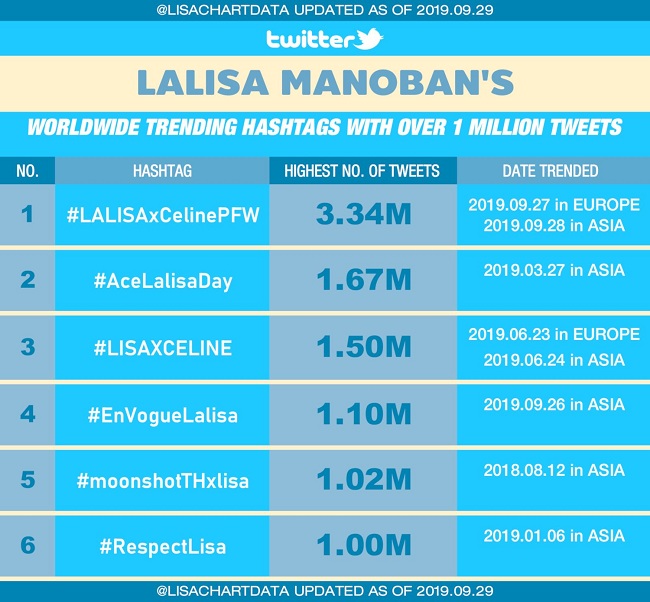 Dòng hashtag #LALISAxCelinePFW lập kỷ lục với 2 triệu lượt tweet trên trang Twitter
