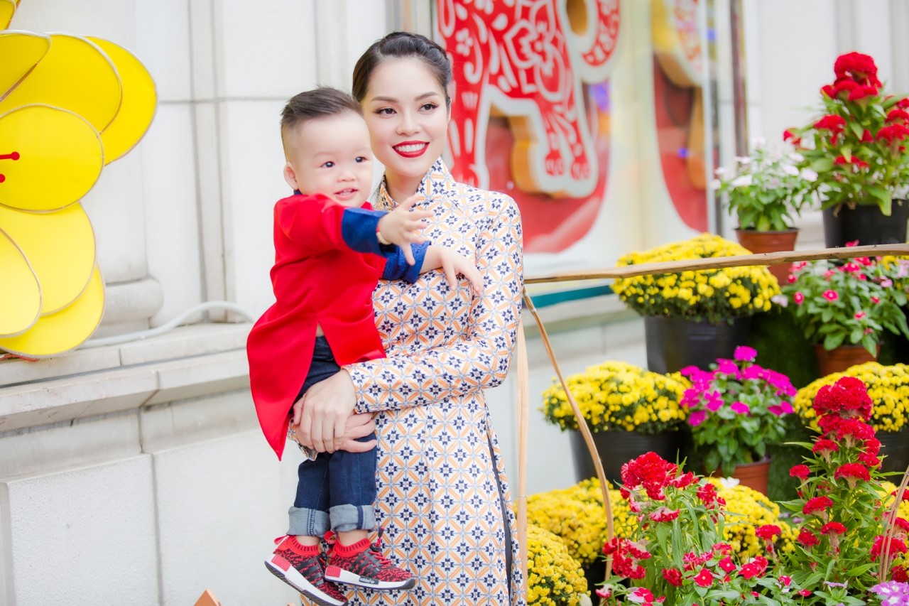 Để có một cái Tết 2018 thật nhiều ý nghĩa với con, Dương Cẩm Lynh tranh thủ những ngày trước Tết cùng con trai đi chụp ảnh kỷ niệm. Hai mẹ con diện áo dài, cùng lưu giữ những khoảnh khắc đáng nhớ bên nhau. Sở hữu thân hình cân đối và khuôn mặt sáng, Dương Cẩm Lynh thích những tông màu tươi sáng và chọn cho bộ ảnh lần này.