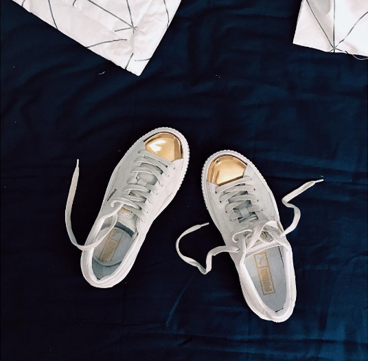 Đôi giày sneaker Puma với mũi ánh bạc ấn tượng.