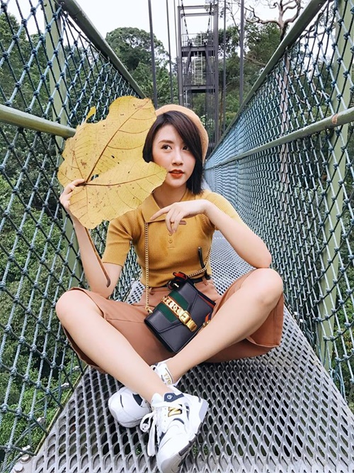 Ngoài ra, những mẫu túi nhỏ gọn xinh xinh rất được lòng Quỳnh Anh Shyn như chiếc túi quai chéo màu trắng tạo nên sự liên kết tông xuyệt tông với đôi sneaker cô mang.